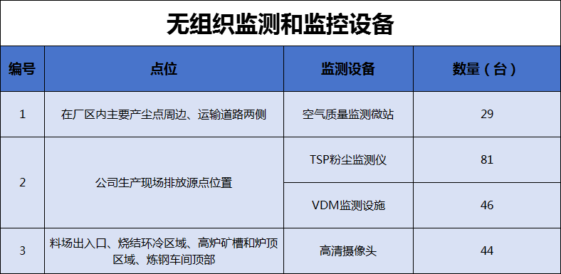 長強(qiáng)鋼鐵對超低排放內(nèi)容進(jìn)行了全面自動(dòng)監(jiān)控、過程監(jiān)控和視頻監(jiān)控設(shè)施建設(shè)。在廠區(qū)內(nèi)主要產(chǎn)塵點(diǎn)周邊、運(yùn)輸?shù)缆穬蓚?cè)布設(shè)空氣微站點(diǎn)共29個(gè),在公司生產(chǎn)現(xiàn)場排放源點(diǎn)位置安裝了TSP數(shù)量81臺、VDM數(shù)量46臺等監(jiān)測設(shè)備,對料場出入口、燒結(jié)環(huán)冷區(qū)域、高爐礦槽和爐頂區(qū)域、煉鋼車間頂部安裝高清視頻監(jiān)控設(shè)施44臺,進(jìn)行了有效監(jiān)管,相關(guān)視頻保存三個(gè)月以上。建設(shè)門禁系統(tǒng)和視頻監(jiān)控系統(tǒng),監(jiān)控運(yùn)輸車輛進(jìn)出廠區(qū)情況。