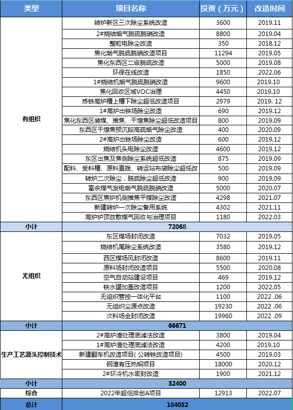 鄂城鋼鐵共投入18.4億元環(huán)保治理資金,其中包括:有組織排放投入7.2億元,無組織排放投入6.7億元,生產(chǎn)工藝源頭控制技術(shù)3.2億元,以及2022年超低排創(chuàng)A項(xiàng)目1.3億元。