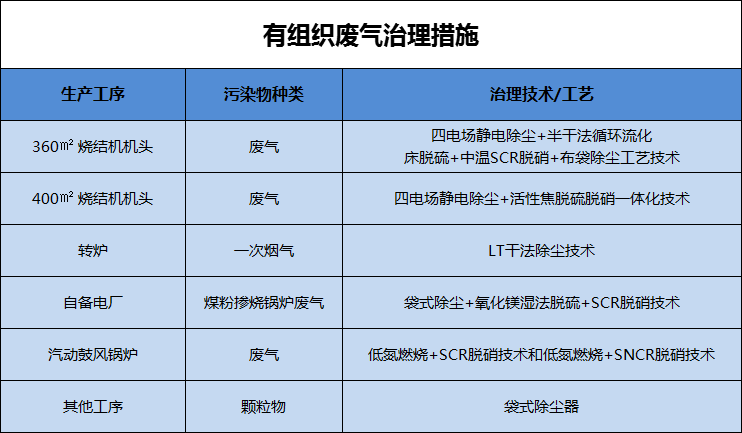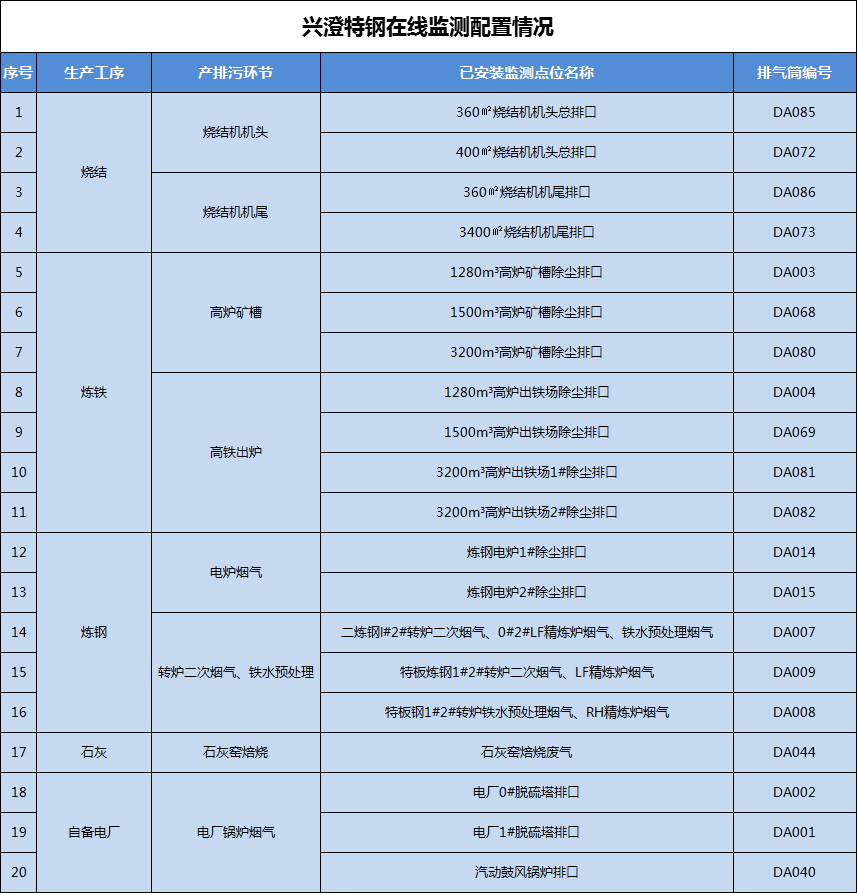 興澄特鋼按照國(guó)家和省市超低排放要求進(jìn)行建設(shè)、改造,燒結(jié)、煉鐵、煉鋼、發(fā)電等各生產(chǎn)工序的有組織排放點(diǎn)位均配備了有效的大氣污染治理措施。360m2燒結(jié)機(jī)機(jī)頭廢氣采用四電場(chǎng)靜電除塵+半干法循環(huán)流化床脫硫+中溫SCR脫硝+布袋除塵工藝技術(shù)、400m2燒結(jié)機(jī)機(jī)頭廢氣采用四電場(chǎng)靜電除塵+活性焦脫硫脫硝一體化技術(shù),設(shè)備運(yùn)行長(zhǎng)期穩(wěn)定,顆粒物、二氧化硫和氮氧化物的排放濃度均能穩(wěn)定達(dá)標(biāo);轉(zhuǎn)爐一次煙氣采用了凈化效率更高的LT干法除塵技術(shù),自備電廠煤粉摻燒鍋爐廢氣采用袋式除塵+氧化鎂濕法脫硫+SCR脫硝技術(shù)、汽動(dòng)鼓風(fēng)鍋爐廢氣分別采用低氮燃燒+SCR脫硝技術(shù)和低氮燃燒+SNCR脫硝技術(shù),其他僅涉及顆粒物排放的工序均采用高效袋式除塵器,通過(guò)更換高效覆膜濾料提高顆粒物去除效率,污染物排放均能達(dá)到超低排放標(biāo)準(zhǔn)要求。