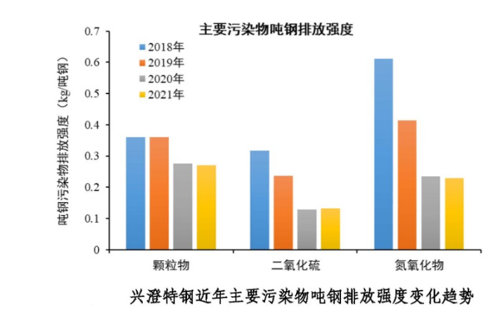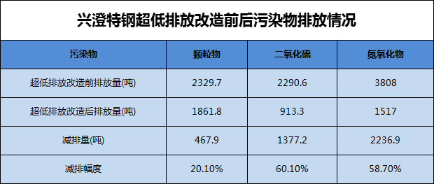 通過(guò)這次超低排放改造,興澄特鋼污染物排放量明顯下降,其中顆粒物、二氧化硫、氮氧化物排放量分別下降20.1%、60.1%、58.7%,噸鋼排放強(qiáng),度分別達(dá)到0.27kg/噸鋼、0.13 kg/噸鋼、0.23 kg/噸鋼,達(dá)到國(guó)內(nèi)外先進(jìn)水平。