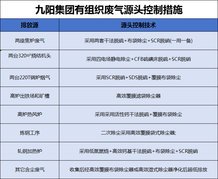 九陽集團對全廠所有廢氣有組織排放口的污染治理進行了超低排放改造,一方面,加強源頭控制,一方面針對不同的排放源采取了對應(yīng)的治理,最大化減少污染物排放。具體情況如下: