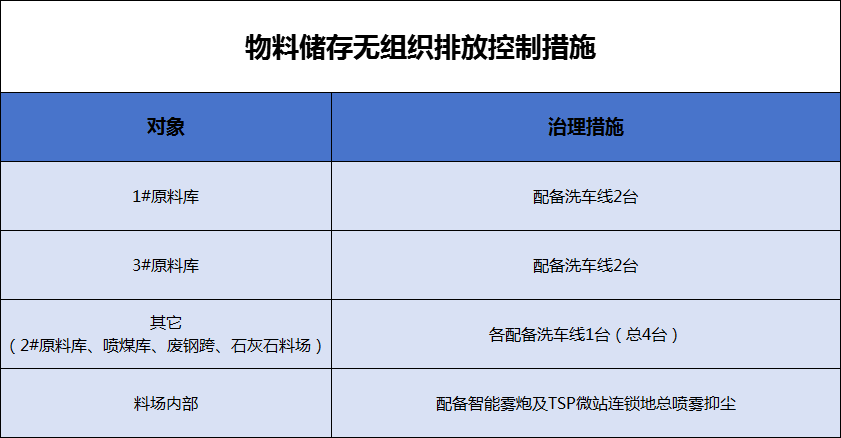 根據(jù)不同的工序和污染物種類等,分別配備不同的治理設(shè)施進行有效的治理控制,降低污染的產(chǎn)生,滿足超低排放要求。
