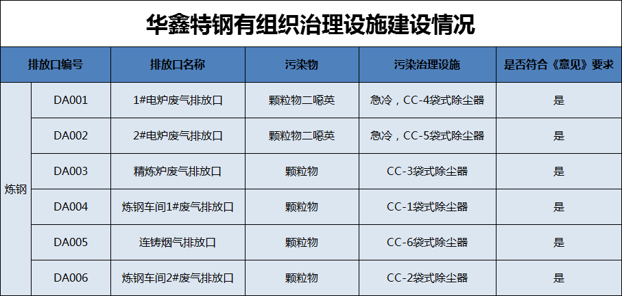 有組織排放改造方面,華鑫特鋼各工序采用了成熟適用的環(huán)保改造技術(shù),電爐煙氣采用第四孔爐內(nèi)排煙+密閉罩+屋頂罩的捕集方式,爐內(nèi)排煙采用急冷+袋式除塵器的治理技術(shù),其余點位均采用袋式除塵,符合《意見》中對有組織廢氣治理的技術(shù)要求。