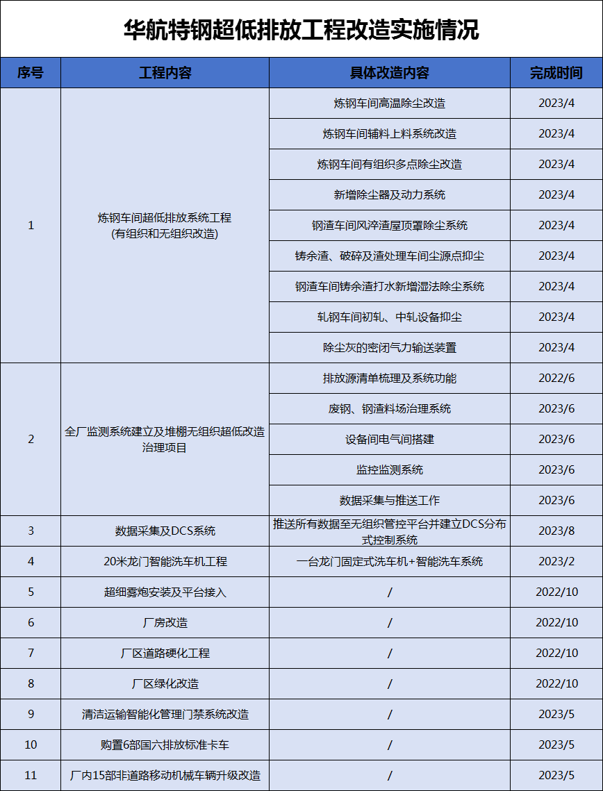 華航特鋼陸續(xù)投資1.2億元實(shí)施超低排放升級(jí)改造,2023年9月基本完成,2024年2月通過(guò)環(huán)保評(píng)估,成功在中國(guó)鋼鐵工業(yè)協(xié)會(huì)完成公示。