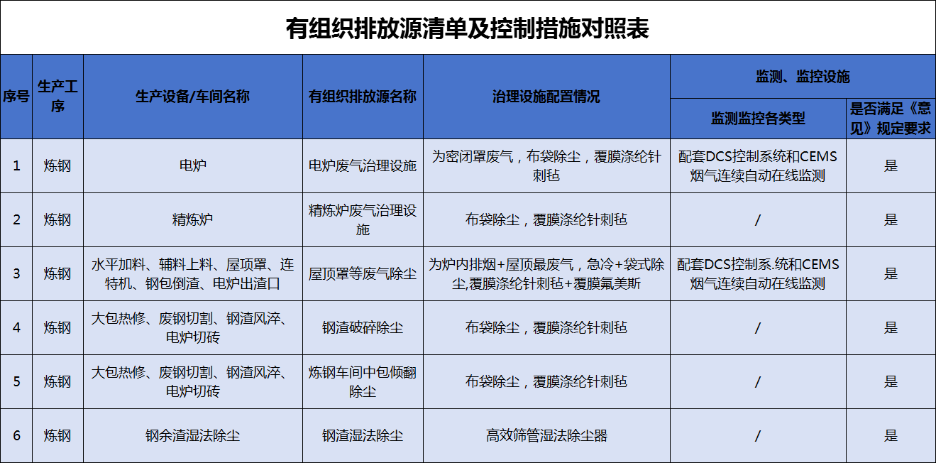 華航特鋼對(duì)全廠各工序有組織污染治理采用成熟適用的環(huán)保技術(shù),最大化減少污染物排放。具體情況如下: