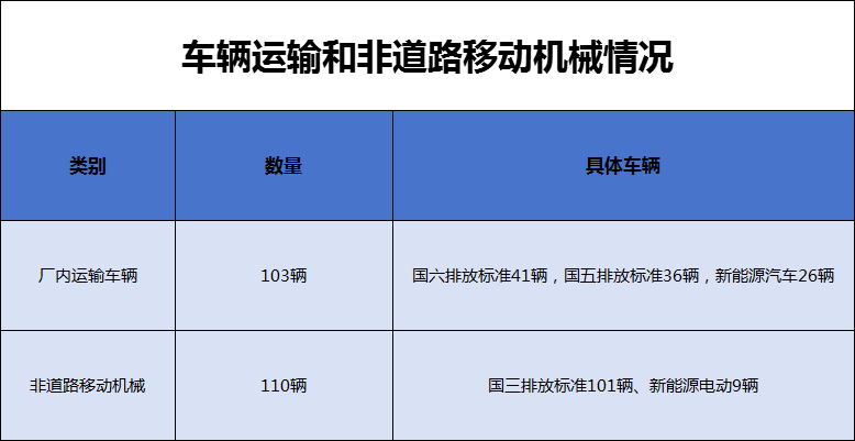 三明本部現(xiàn)有廠內(nèi)運(yùn)輸車輛共計(jì)103輛,其中國(guó)六排放標(biāo)準(zhǔn)41輛、國(guó)五排放標(biāo)準(zhǔn)36輛、新能源汽車26輛,均進(jìn)行了車牌號(hào)碼編碼登記管理?,F(xiàn)有廠內(nèi)非道路移動(dòng)機(jī)械共計(jì)110輛,其中國(guó)三排放標(biāo)準(zhǔn)101輛、新能源電動(dòng)9輛,均完成了地方環(huán)保編碼登記工作。