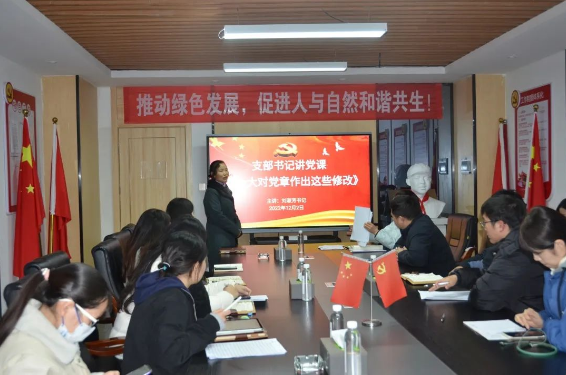 會議第二個議題是由支部書記劉淑芳同志帶領(lǐng)大家學習《黨的二十大對黨章作出這些修改》,讓與會黨員對二十大精神有了更深的領(lǐng)悟。
