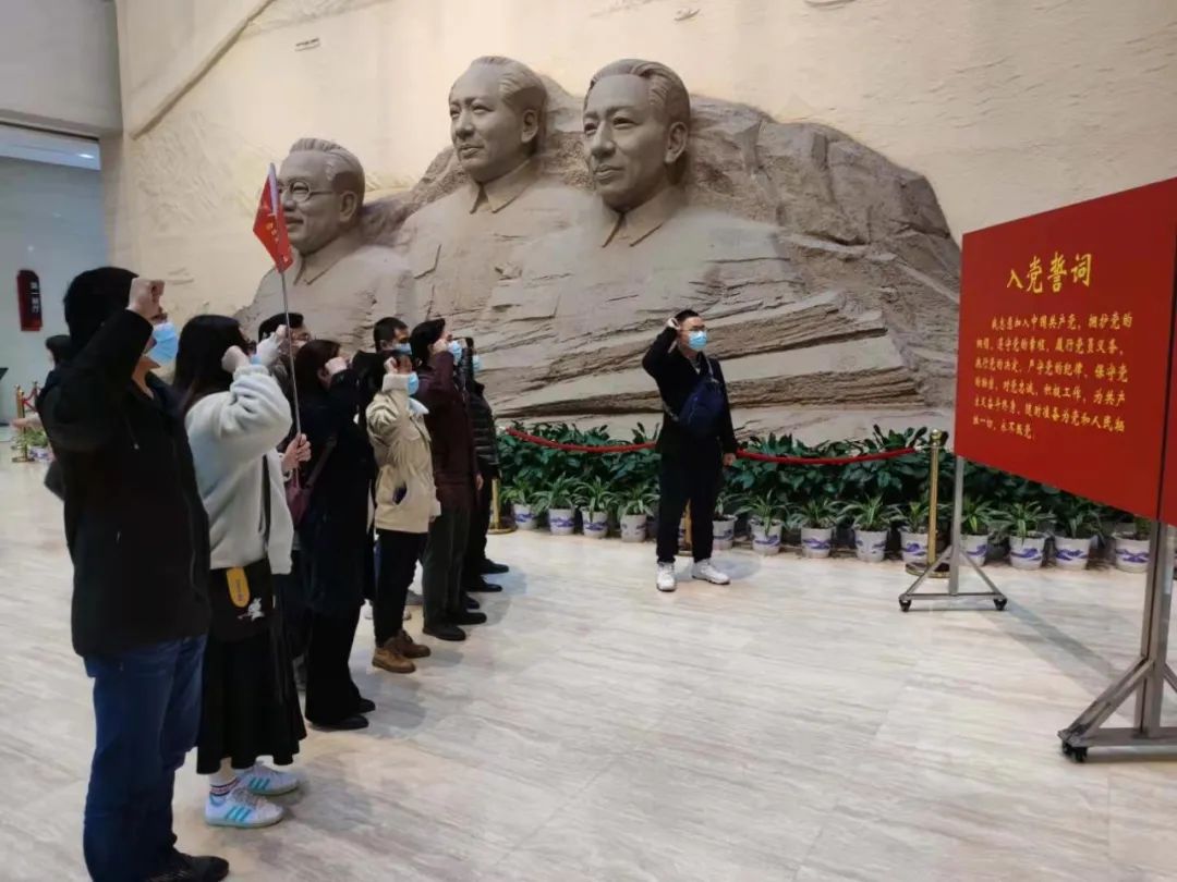 同志們首先來到了館內(nèi)的黨史博物館,在博物館大廳重溫入黨誓詞。