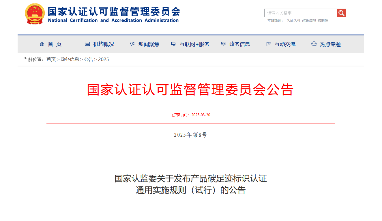 近日,國家認(rèn)監(jiān)委正式發(fā)布《產(chǎn)品碳足跡標(biāo)識認(rèn)證通用實施規(guī)則(試行)》(以下簡稱《通用實施規(guī)則》)和中國產(chǎn)品碳足跡標(biāo)識,這是我國首個系統(tǒng)性產(chǎn)品碳標(biāo)識認(rèn)證制度文件。