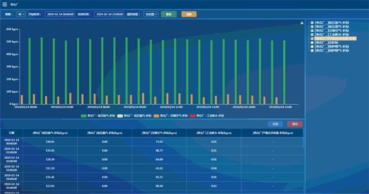 通過能源管理系統(tǒng)的計劃過程、平衡預測、各主要工序的能源生產和消耗情況的監(jiān)控與分析,實現(xiàn)了能源的工序成本核算,將企業(yè)各工序、設備的用能成本進行分類,將用能轉換為實際成本,建立客觀的以數(shù)據為依據的能源成本消耗評價體系。