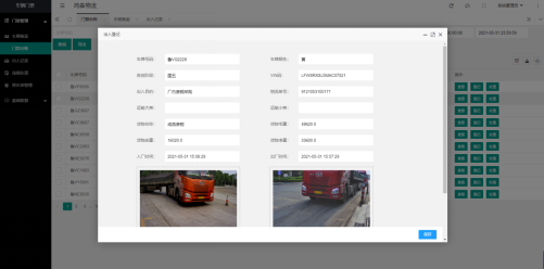 清潔運輸臺賬包含車牌號碼、車牌顏色、VIN碼、排放階段、發(fā)動機號碼、能源標(biāo)識、物料名稱、物料分類、重量、入廠時間、入廠抓拍圖、出廠時間、出廠抓拍圖等信息。按環(huán)保要求上報政府環(huán)保平臺,施行統(tǒng)一監(jiān)管策略。