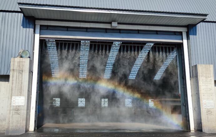 2、每個(gè)大門地面安裝智能干霧抑塵系統(tǒng),當(dāng)車輛進(jìn)出時(shí)能實(shí)現(xiàn)自動(dòng)干霧控制抑塵。
