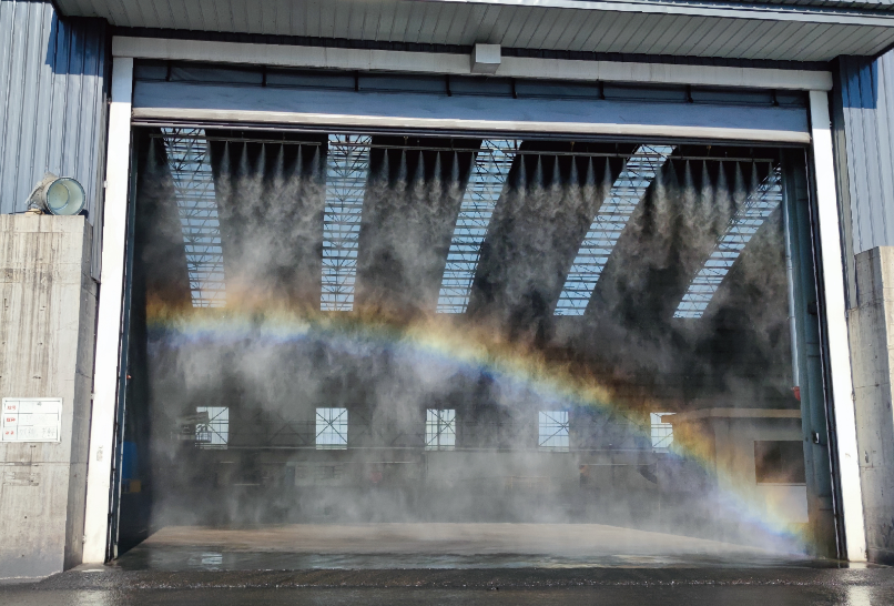 在物料儲存過程中安裝除塵器,通過過濾和收集粉塵顆粒,減少排放。在料棚(不含熟料、原煤)產塵點安裝霧炮干霧抑塵等等噴霧抑塵設施,通過噴灑水霧形成濕化層,降低粉塵飛揚;在車輛行駛區(qū)域及出入口進行地面硬化及安裝自動門,并設置智能洗車機,防止粉塵外泄,降低粉塵污染。