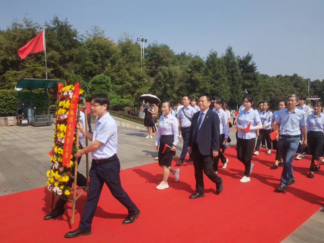 活動(dòng)第一站是毛澤東銅像廣場。九九全體人員向毛澤東同志銅像舉行敬獻(xiàn)花籃儀式,并向毛澤東同志銅像深深三鞠躬,深刻緬懷偉人的豐功偉績和革命精神。公司黨支部全體黨員在支部書記劉淑芳的帶領(lǐng)下,重溫入黨誓詞。隨后,全體人員繞銅像一周,表達(dá)對毛主席的崇高敬意和無限追思。