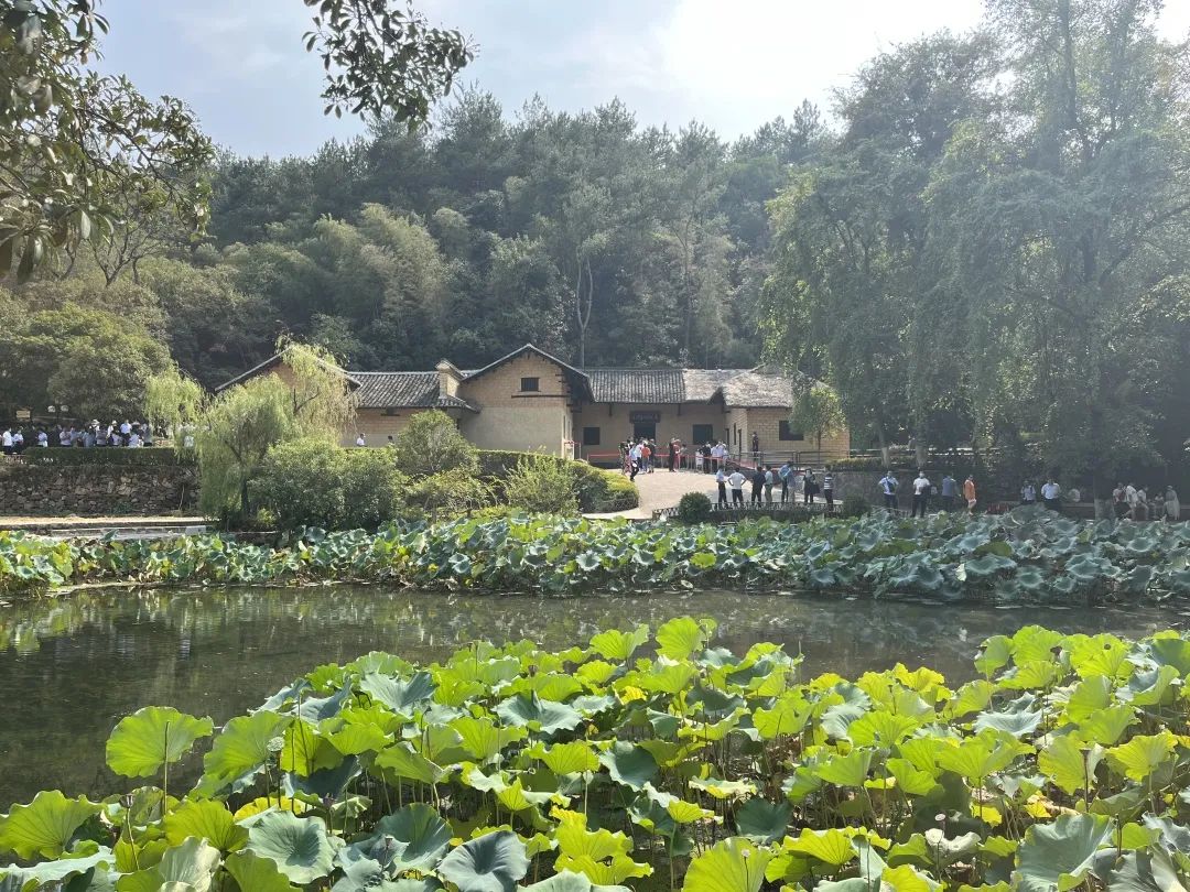 在偉人故居,全體人員追尋著主席居住過的痕跡。故居里面的擺設(shè)一切依舊,雖經(jīng)歲月洗禮褪卻了原有的色彩,但每一件生活、學(xué)習(xí)和勞作的文物,都重現(xiàn)了毛澤東同志少年時(shí)的生活場景。大家感受著偉人當(dāng)年外出求學(xué)的決心與志向,對這位把自己的青春與熱血獻(xiàn)給了革命事業(yè)的偉人表達(dá)了無盡的敬佩。在偉人故居后屋的曬谷坪,全體人員集體朗誦毛主席曾經(jīng)寫下的《七律?到韶山》。這首詩詞,記述了毛澤東1959年回到闊別32年的故鄉(xiāng)時(shí)的真實(shí)感受。贊揚(yáng)了革命人民艱苦卓絕的戰(zhàn)斗精神,歌頌了中國人民戰(zhàn)天斗地的風(fēng)貌,鮮明地體現(xiàn)了毛澤東高遠(yuǎn)的思想境界。九九人慷慨激昂的朗誦,紀(jì)念偉人的深情,響徹云霄,震撼心靈。