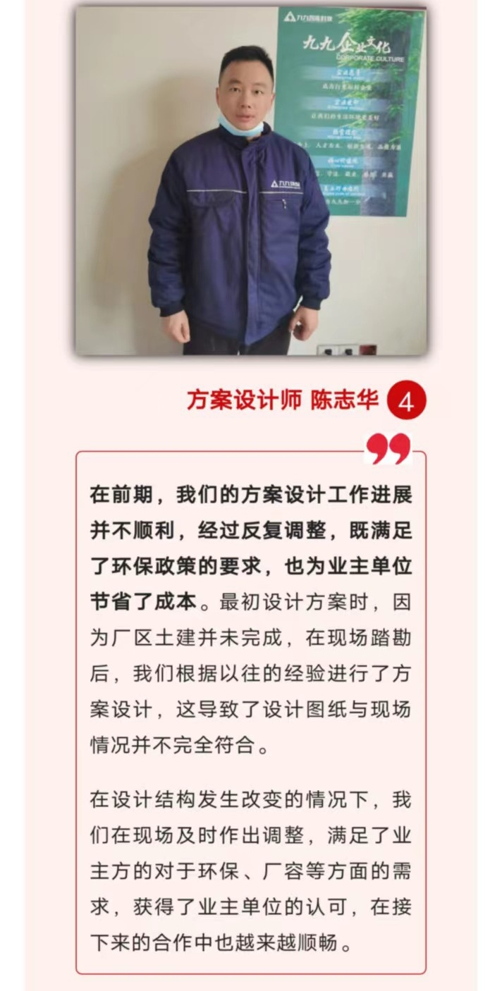 這封表揚(yáng)信不僅加蓋了業(yè)主單位的公章,還附上了客戶高管張林功先生的親筆簽名,對(duì)周君、米盼峰、楊城城、陳志華、周進(jìn)、張申敏、殷果等人在超低排放改造項(xiàng)目建設(shè)過程中的重要貢獻(xiàn)表示感謝,這對(duì)九九團(tuán)隊(duì)來說無疑是最好的褒獎(jiǎng)和鼓勵(lì)。
