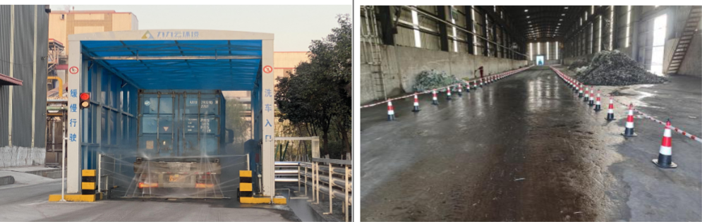 德龍鎳業(yè)所使用的除塵灰通過吸排罐車或氣力輸送參與鎳鐵合金項(xiàng)目配料。石灰、合金、螢石、白云石等塊狀及粘濕物料均儲(chǔ)存于2個(gè)全封閉料場(chǎng)中,料場(chǎng)內(nèi)部實(shí)行路料分離,料場(chǎng)配套建設(shè)超細(xì)霧炮,通過AI攝像頭識(shí)別車輛作業(yè)聯(lián)動(dòng)霧炮及TSP監(jiān)測(cè)數(shù)據(jù)聯(lián)動(dòng)霧炮進(jìn)行無(wú)組織精細(xì)化治理,料場(chǎng)出口配套建設(shè)高壓車輛清洗機(jī),車輛必須經(jīng)過清洗后方可上路行駛,所有生產(chǎn)、治理管控信息在一體化管控平臺(tái)均可調(diào)取查看。