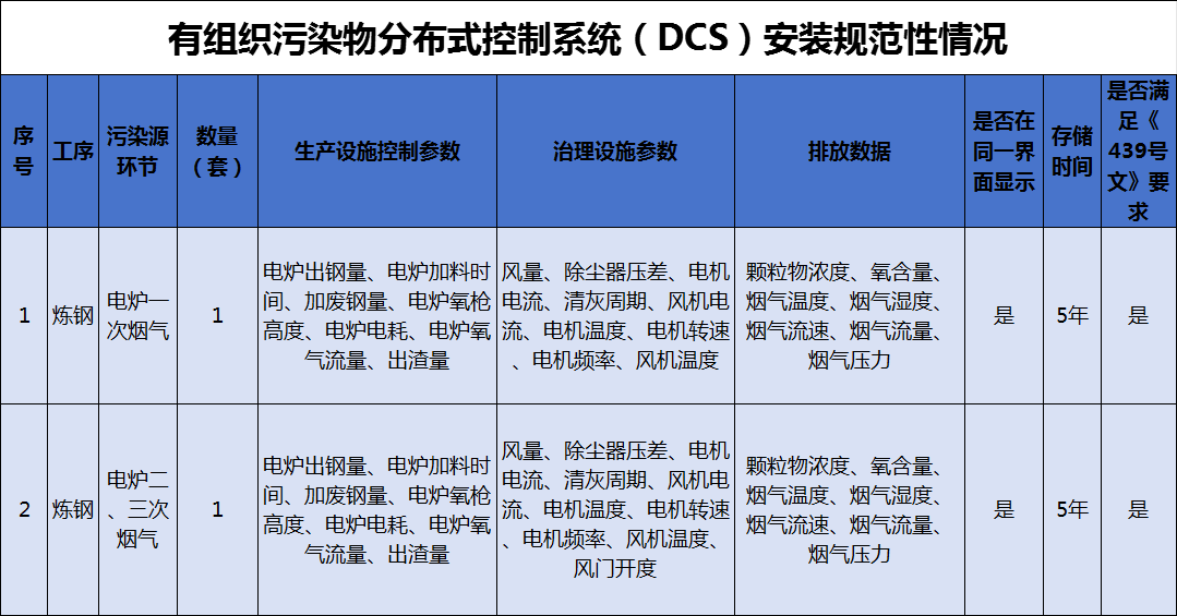 依據(jù)《意見》《439號(hào)文》要求,中首特鋼電爐煙氣污染源污染治理設(shè)施均已安裝分布式控制系統(tǒng)(DCS)共2套,DCS系統(tǒng)可記錄企業(yè)環(huán)保設(shè)施運(yùn)行及相關(guān)生產(chǎn)過程主要參數(shù),可以查詢各除塵設(shè)施所有運(yùn)行參數(shù)及CEMS在線監(jiān)測(cè)數(shù)據(jù),可體現(xiàn)生產(chǎn)負(fù)荷和設(shè)備啟停的主要生產(chǎn)工藝參數(shù)的相關(guān)功能,任意參數(shù)曲線可組合至同一個(gè)界面中查看;數(shù)據(jù)存儲(chǔ)能力具備保存五年以上歷史數(shù)據(jù),符合政策要求。