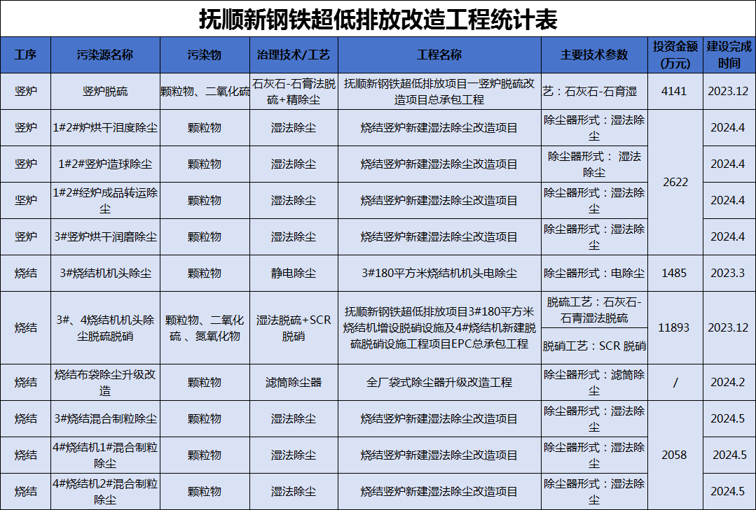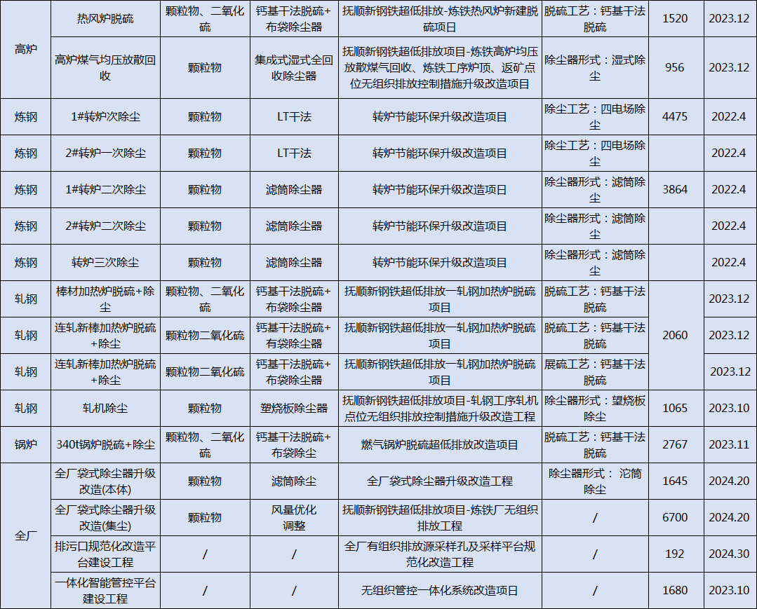 撫順新鋼鐵破碎機(jī)、振動(dòng)篩、混合機(jī)等生產(chǎn)設(shè)施經(jīng)現(xiàn)場核查實(shí)現(xiàn)了封閉,并配備了除塵裝置;燒結(jié)機(jī)、燒結(jié)環(huán)冷機(jī),高爐爐頂上料、礦槽、高爐出鐵場,轉(zhuǎn)爐等產(chǎn)塵點(diǎn)均配備了除塵設(shè)備;高爐出鐵場平臺實(shí)現(xiàn)了封閉,鐵溝、渣溝加蓋封閉;煉鋼廠房實(shí)現(xiàn)了封閉改造,并設(shè)有屋頂罩除塵;高爐爐頂料罐設(shè)置了煤氣均壓放散回收裝置。174個(gè)生產(chǎn)工藝無組織點(diǎn)位全部滿足超低要求。