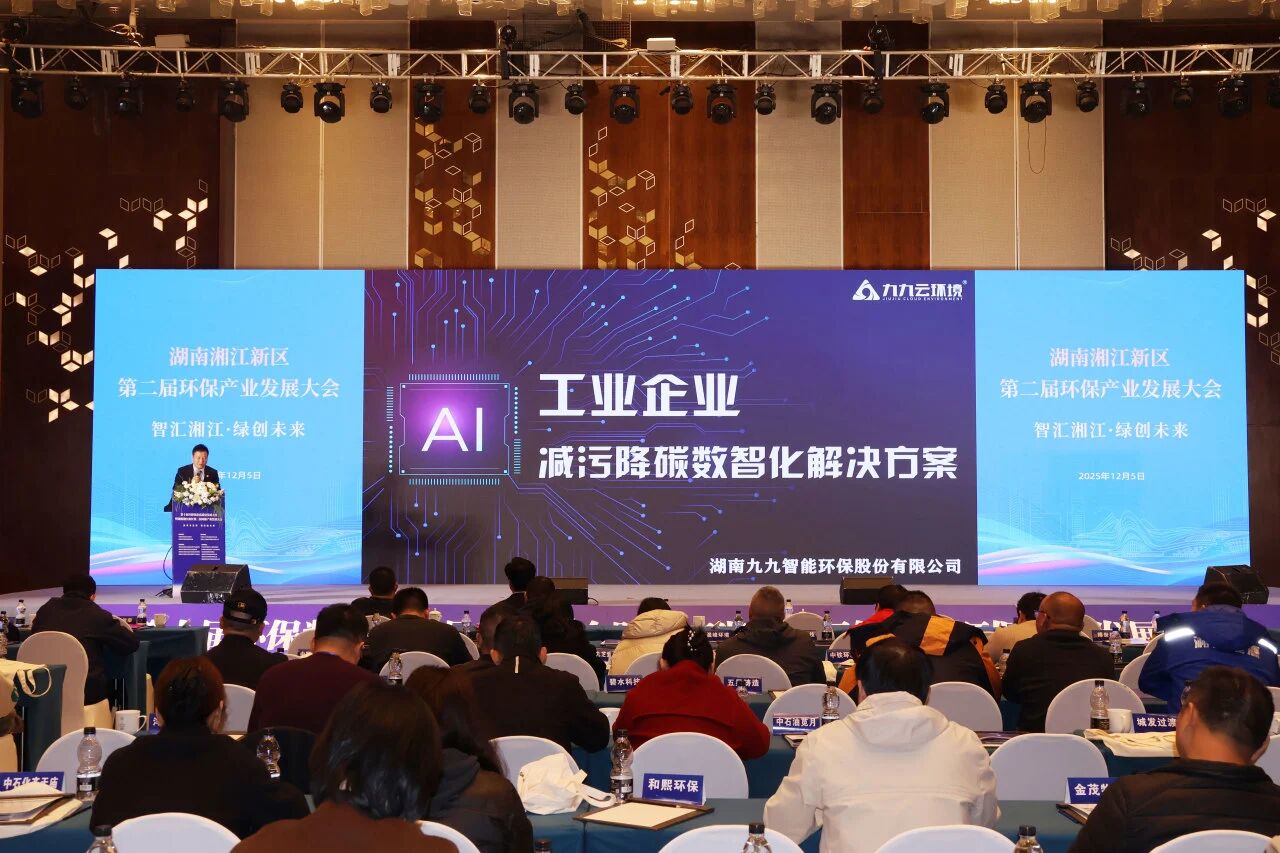 湖南九九智能環(huán)保股份有限公司董事長(zhǎng)劉黎明作為“AI+節(jié)能減污降碳”領(lǐng)域的標(biāo)桿企業(yè)代表,在大會(huì)上分享了公司在工業(yè)減污降碳數(shù)智化方面的創(chuàng)新實(shí)踐。