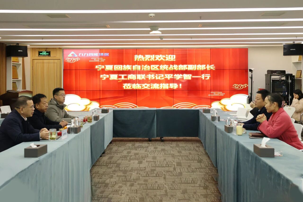 12月24日,寧夏回族自治區(qū)統(tǒng)戰(zhàn)部副部長、工商聯(lián)黨組書記平學智,寧夏回族自治區(qū)工商聯(lián)組織和商會處處長王紅忠,寧夏湖南商會會長彭樹其一行蒞臨九九智能環(huán)保考察交流。公司董事長劉黎明、總經(jīng)理劉淑芳熱情接待,并陪同參觀講解。