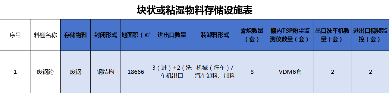 航達(dá)鋼鐵主要的塊狀或粘濕物料存儲的料場(棚)共計(jì)1處,為廢鋼跨,進(jìn)行了相關(guān)的治理措施。