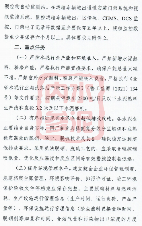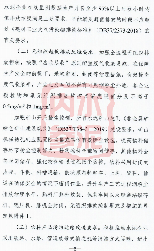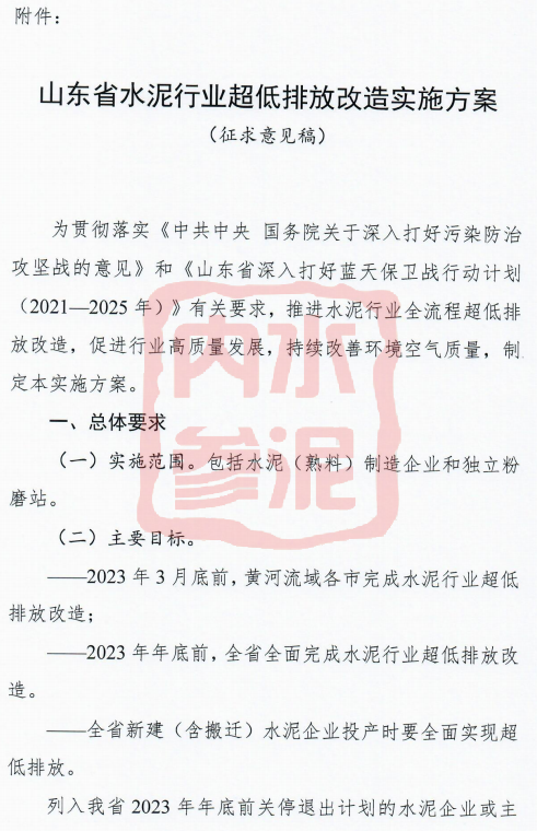 日前,山東省生態(tài)環(huán)境廳針對水泥(熟料)制造企業(yè)和獨立粉磨站起草了《山東省水泥行業(yè)超低排放改造實施方案(征求意見稿)》: