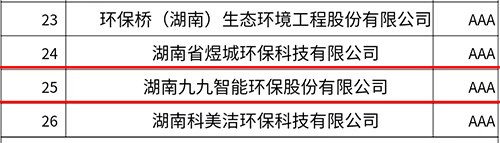 近日,湖南省生態(tài)環(huán)境廳、湖南省環(huán)保產(chǎn)業(yè)協(xié)會聯(lián)合發(fā)布《關(guān)于2022年湖南省環(huán)境保護先進技術(shù)、示范工程、企業(yè)信用等級評價結(jié)果的公示》,經(jīng)我司申報、材料初審、專家評審等程序,湖南九九智能環(huán)保股份有限公司自主研發(fā)的“工礦企業(yè)無組織排放粉塵測控治清潔生產(chǎn)技術(shù)”成功入選2022年湖南省環(huán)境保護先進技術(shù)名錄》,同時上榜2022湖南省環(huán)保企業(yè)AAA企業(yè)信用等級名單。