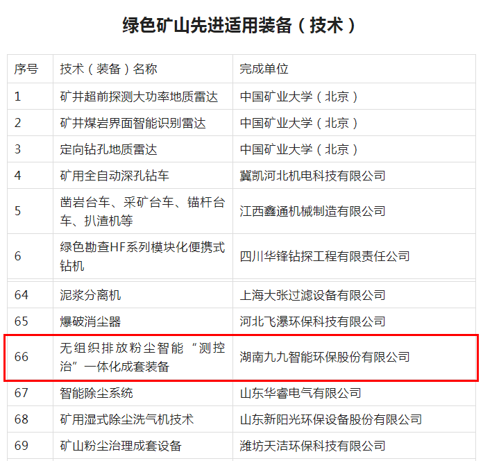 喜訊 | 九九智能環(huán)保入選綠色礦山先進(jìn)適用裝備(技術(shù))