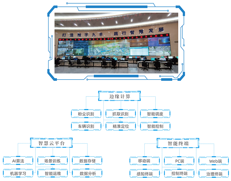 九九智能環(huán)保自主研發(fā)的“無組織排放粉塵智能'測控治'一體化成套裝備”,將機(jī)器視覺、通信物聯(lián)、人工智能、數(shù)字孿生、大數(shù)據(jù)、云邊計(jì)算等新一代信息技術(shù)與智能環(huán)保裝備深度融合,為工礦企業(yè)打造綠色智能工廠,達(dá)到超低排放要求。