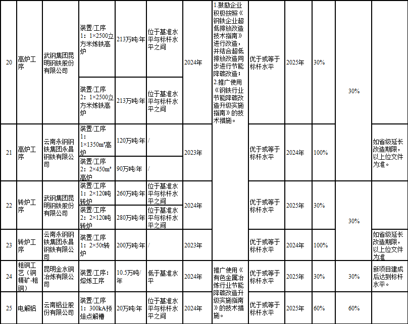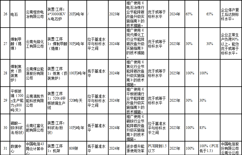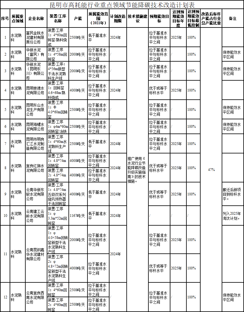 昆明市高耗能行業(yè)重點(diǎn)領(lǐng)域節(jié)能降碳技術(shù)改造計(jì)劃表