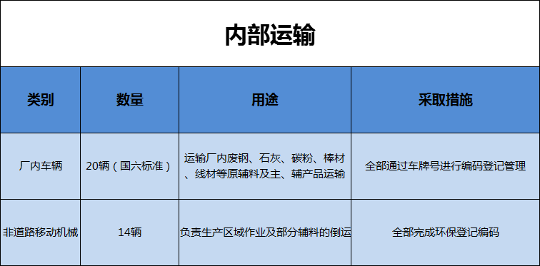 萬泰特鋼對(duì)于負(fù)責(zé)場內(nèi)運(yùn)輸?shù)膬?nèi)部運(yùn)輸車輛,全部通過車牌號(hào)進(jìn)行編碼登記管理,對(duì)于所有非道路移動(dòng)機(jī)械全部完成環(huán)保等級(jí)編碼。