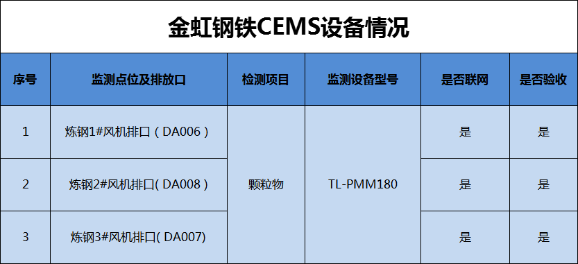 金虹鋼鐵根據(jù)《意見》要求,對規(guī)定的相關(guān)點(diǎn)位均安裝了3套煙氣排放自動(dòng)監(jiān)控系統(tǒng)(CEMS)。