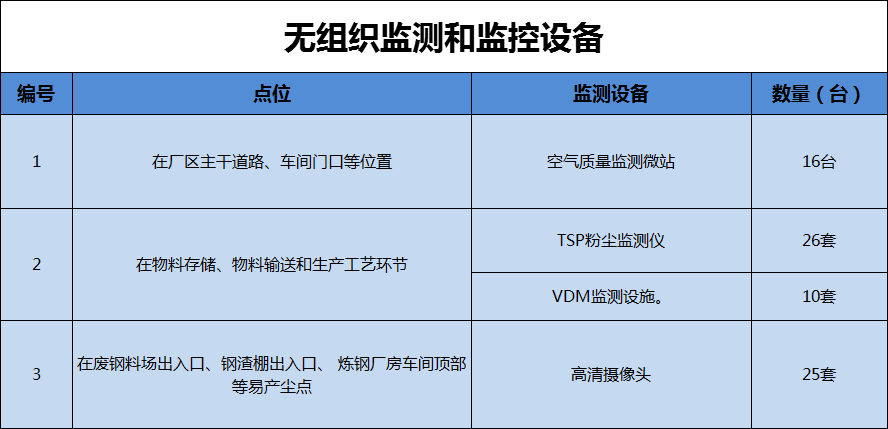 為掌握全廠廢氣污染物治理設(shè)施的運(yùn)行效果及廠區(qū)內(nèi)不同生產(chǎn)單元的環(huán)境控制質(zhì)量情況,鴻泰鋼鐵設(shè)置了16套空氣微站、26套TSP粉塵檢測儀,10套VDM監(jiān)測設(shè)施、25套高清攝像頭,實時監(jiān)測廠區(qū)的無組織排放情況,以便及時治理。