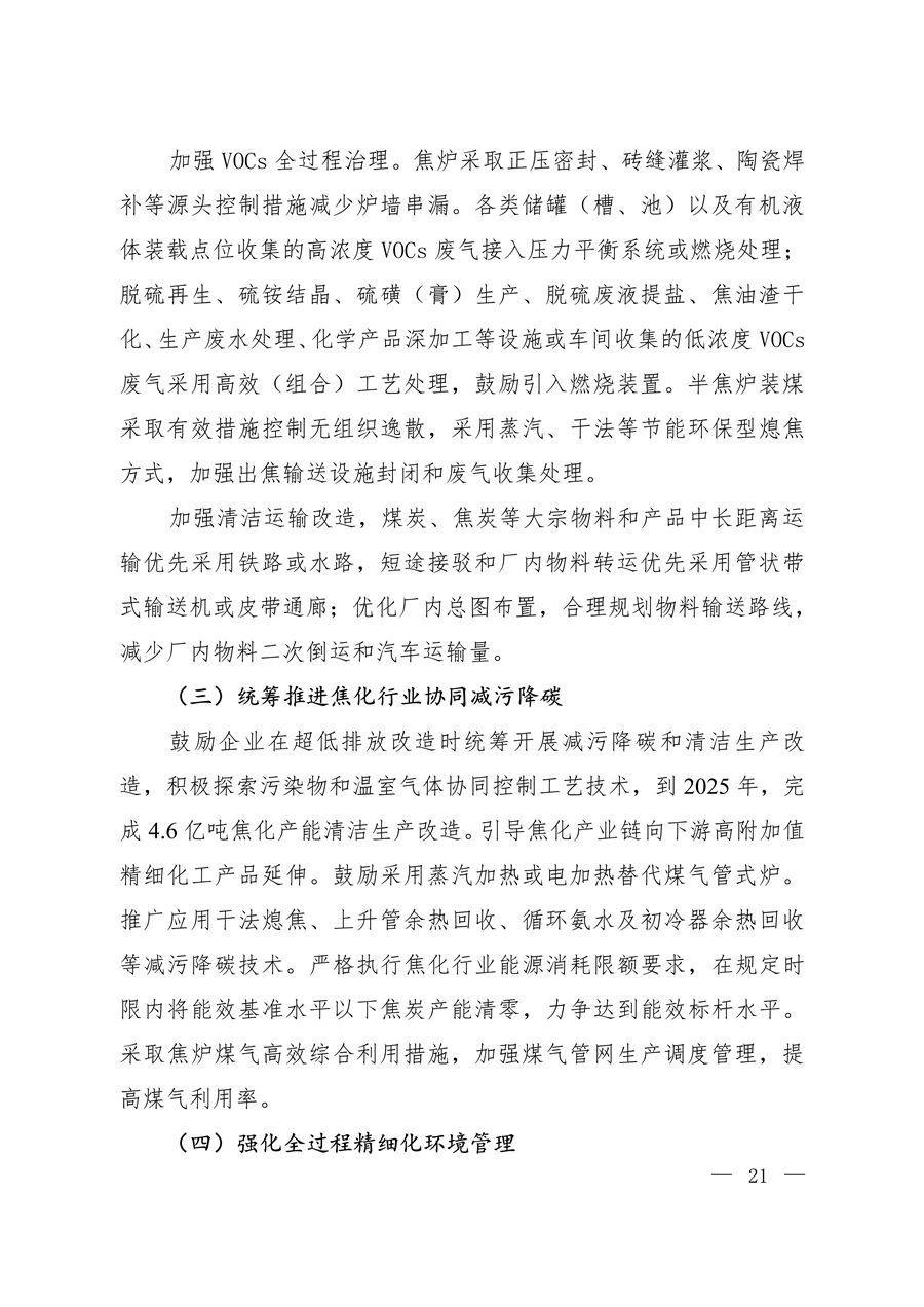 按照“源頭管控、全過(guò)程控制、分步實(shí)施”的原則,對(duì)本市焦化行業(yè)所有生產(chǎn)環(huán)節(jié)實(shí)施升級(jí)改造,對(duì)有組織排放、無(wú)組..