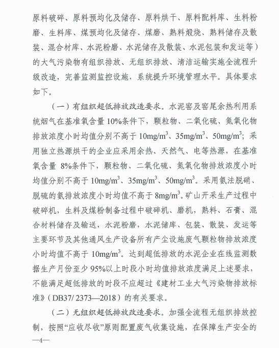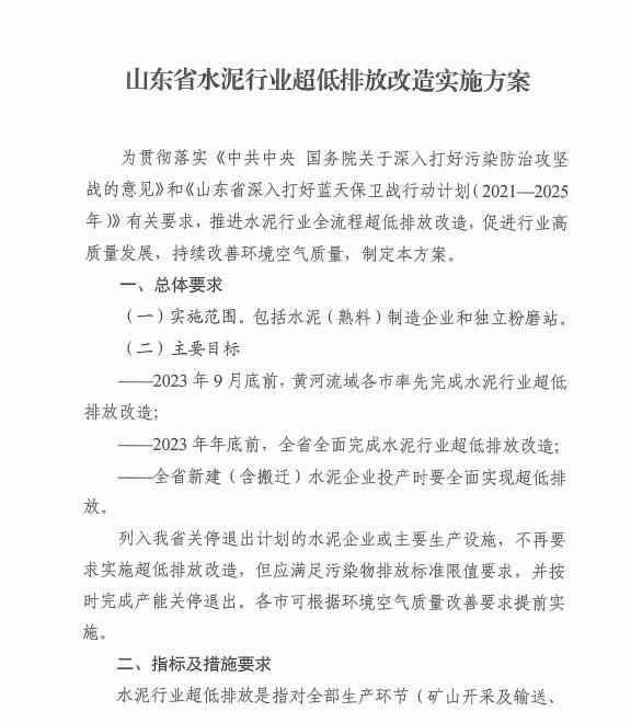 近日,為貫徹落實(shí)《中共中央國務(wù)院關(guān)于深入打好污染防治攻堅(jiān)戰(zhàn)的意見》和《山東省深入打好藍(lán)天保衛(wèi)戰(zhàn)行動計(jì)劃(2021--2025年)》有關(guān)要求,推進(jìn)水泥行業(yè)全流程超低排放改造,促進(jìn)行業(yè)高質(zhì)量發(fā)展,持續(xù)改善環(huán)境空氣質(zhì)量,山東省發(fā)布水泥行業(yè)超低排放改造實(shí)施方案。
