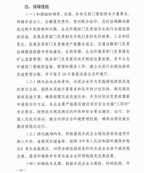 方案中提出,2023年9月底前,黃河流域各市率先完成水泥行業(yè)超低排放改造;2023年年底前,全省全面完成水泥行業(yè)超低排放改造;,全省新建(含搬遷)水泥企業(yè)投產(chǎn)時要全面實(shí)現(xiàn)超低排放,并提出了具體排放要求。