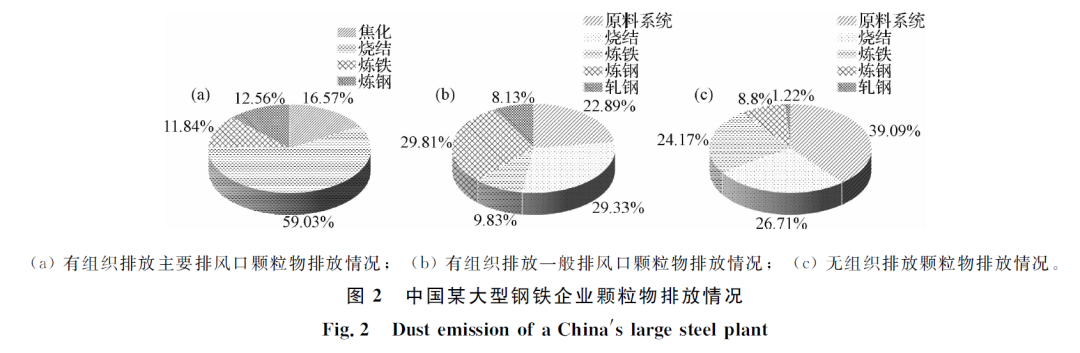 (1)鋼鐵生產(chǎn)用原燃料在運(yùn)輸、裝卸及加工生產(chǎn)過程中所產(chǎn)生的大量含塵煙氣。比如原料場中原燃料堆放、裝卸過程產(chǎn)生的粉塵;原料系統(tǒng)向高爐、燒結(jié)、球團(tuán)等工序輸送轉(zhuǎn)運(yùn)原燃料過程產(chǎn)生的粉塵;原燃料破碎篩分過程產(chǎn)生的粉塵;配料時(shí)外溢的粉塵等。除了廠區(qū)內(nèi)的運(yùn)輸污染外,中國鋼鐵企業(yè)運(yùn)輸多采用公路運(yùn)輸,導(dǎo)致在運(yùn)輸過程中會排放大量的貨物揚(yáng)塵。本文中粉塵指懸浮在空氣中的固體顆粒物的總稱,PM10是指粒徑小于10μm的粉塵,PM2.5是指粒徑小于2.5μm的粉塵。