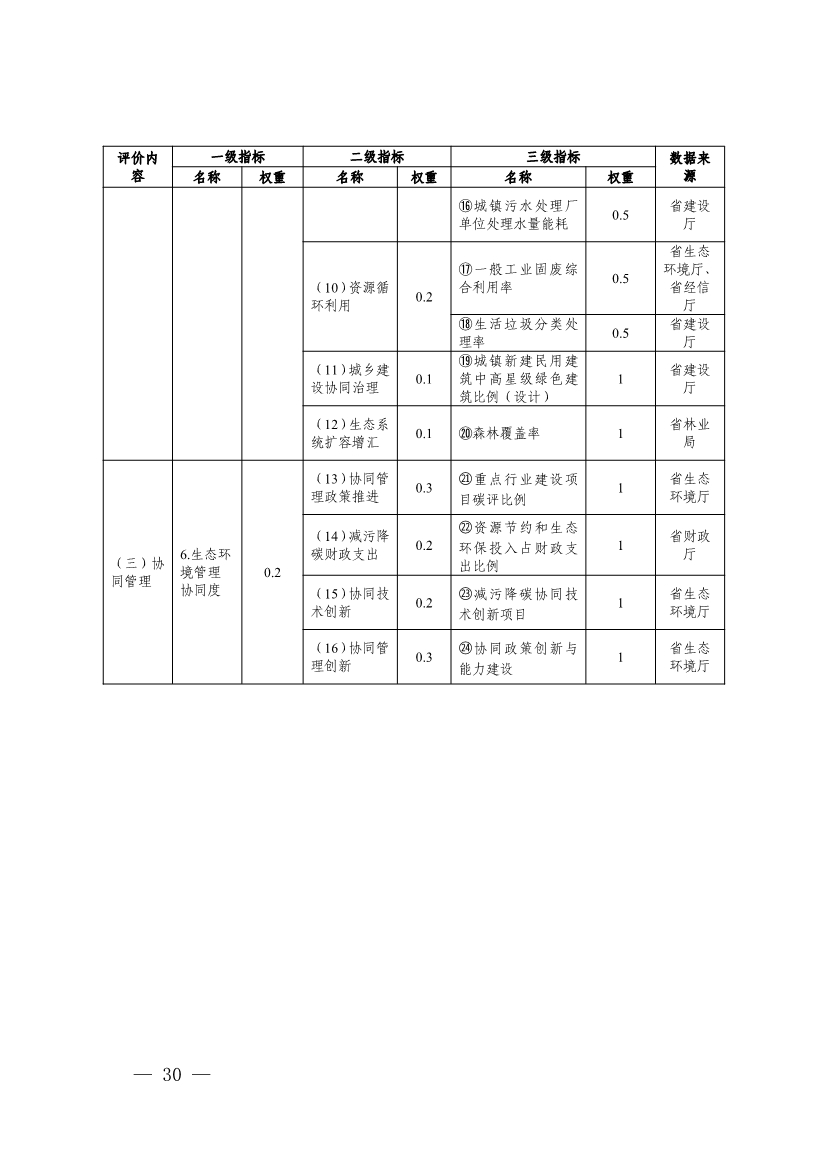 (二十二)建立減污降碳協(xié)同評(píng)價(jià)機(jī)制。建立并動(dòng)態(tài)發(fā)布浙江省減污降碳協(xié)同指數(shù),對(duì)各城市減污降碳協(xié)同工作推進(jìn)情況進(jìn)行跟蹤評(píng)估,客觀評(píng)價(jià)各城市環(huán)境—?dú)夂颉?jīng)濟(jì)效益協(xié)同、重點(diǎn)措施增效、協(xié)同管理提效的實(shí)施效果。