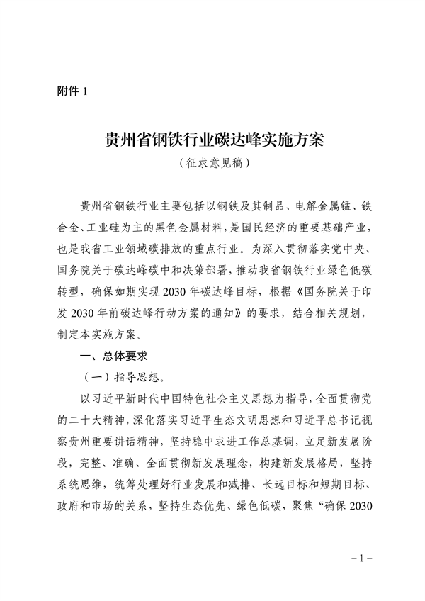 《貴州省鋼鐵行業(yè)碳達(dá)峰實(shí)施方案(征求意見(jiàn)稿)》