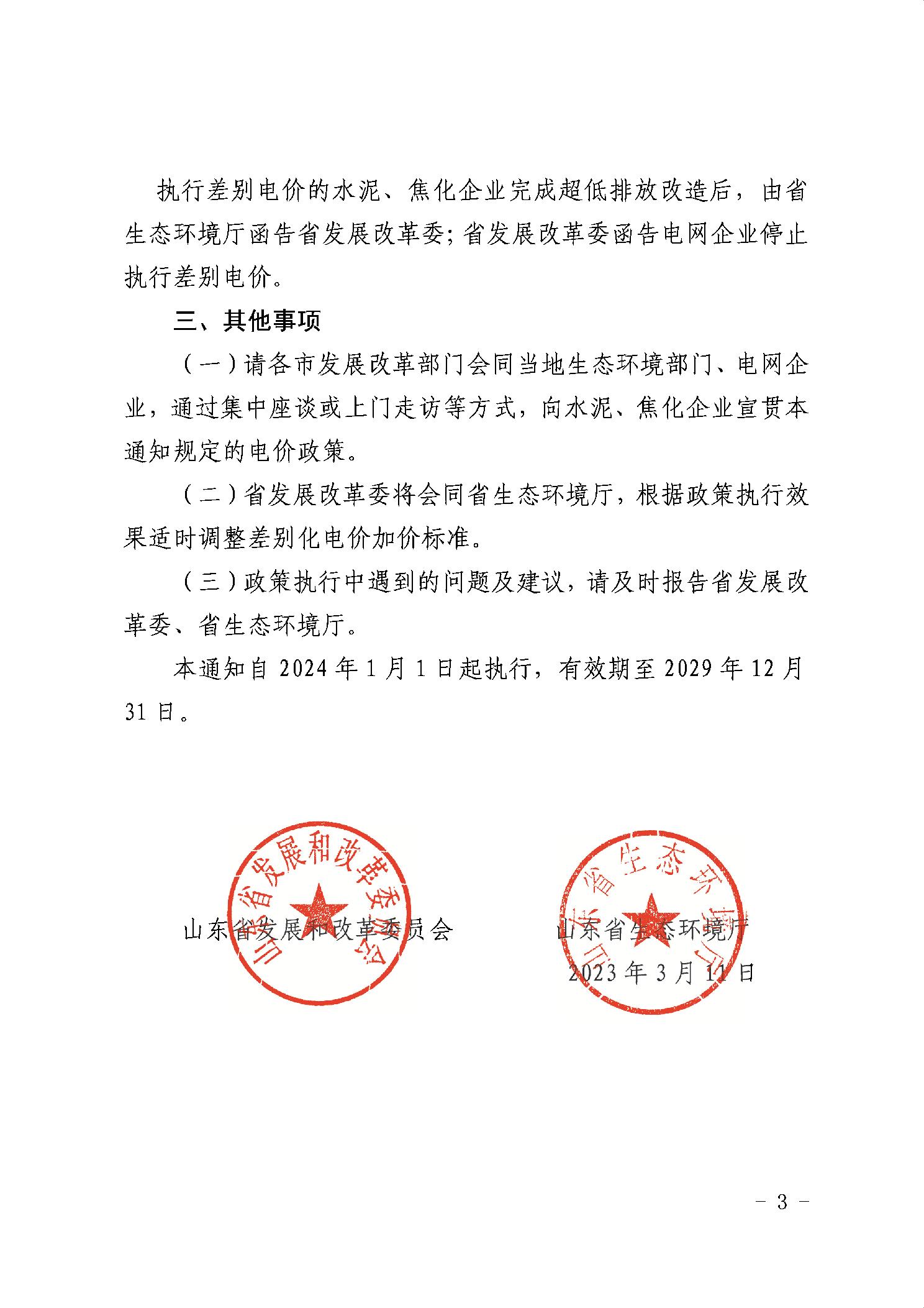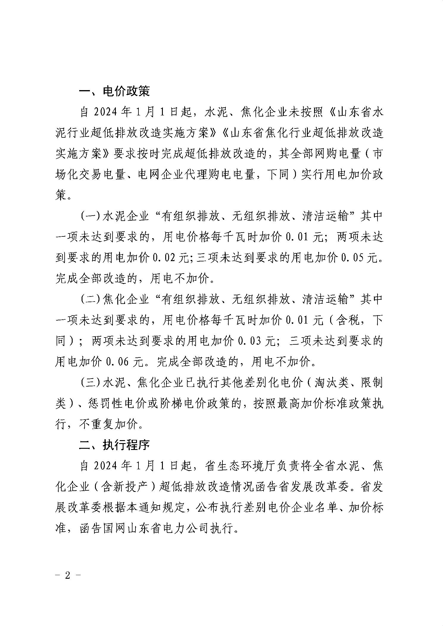 山東:2024年1月1日起 水泥焦化企業(yè)實(shí)行超低排放差別化電價(jià)政策