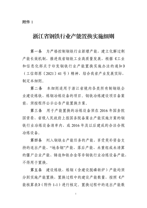 《浙江省鋼鐵行業(yè)產(chǎn)能置換實施細(xì)則》