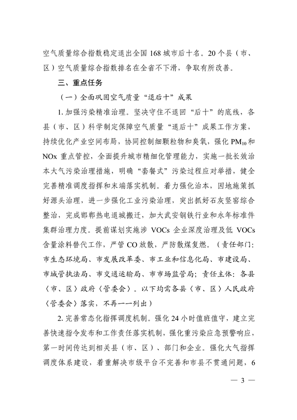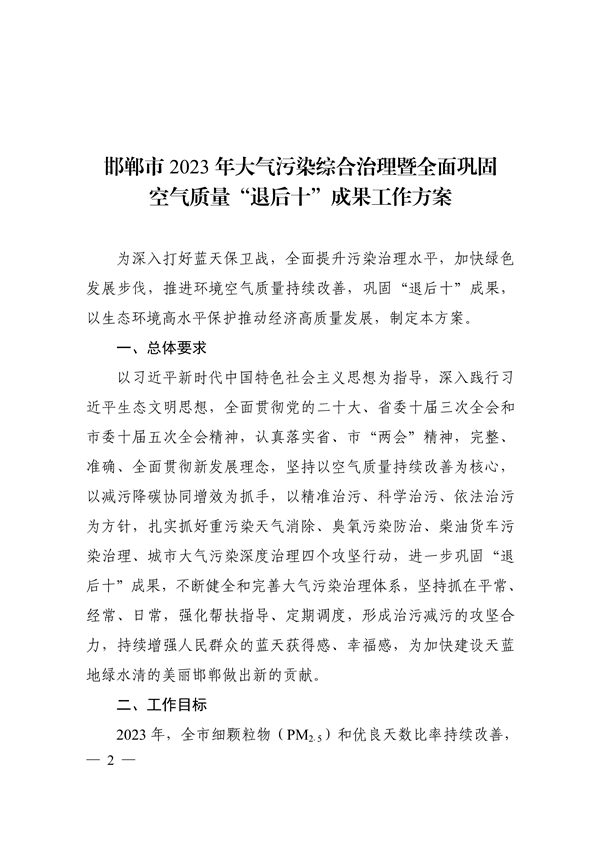 《邯鄲市2023年大氣污染綜合治理暨全面鞏固“退后十”成果工作方案》