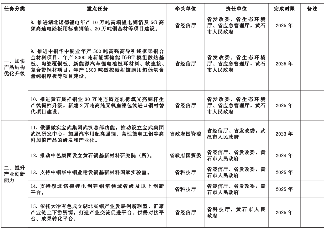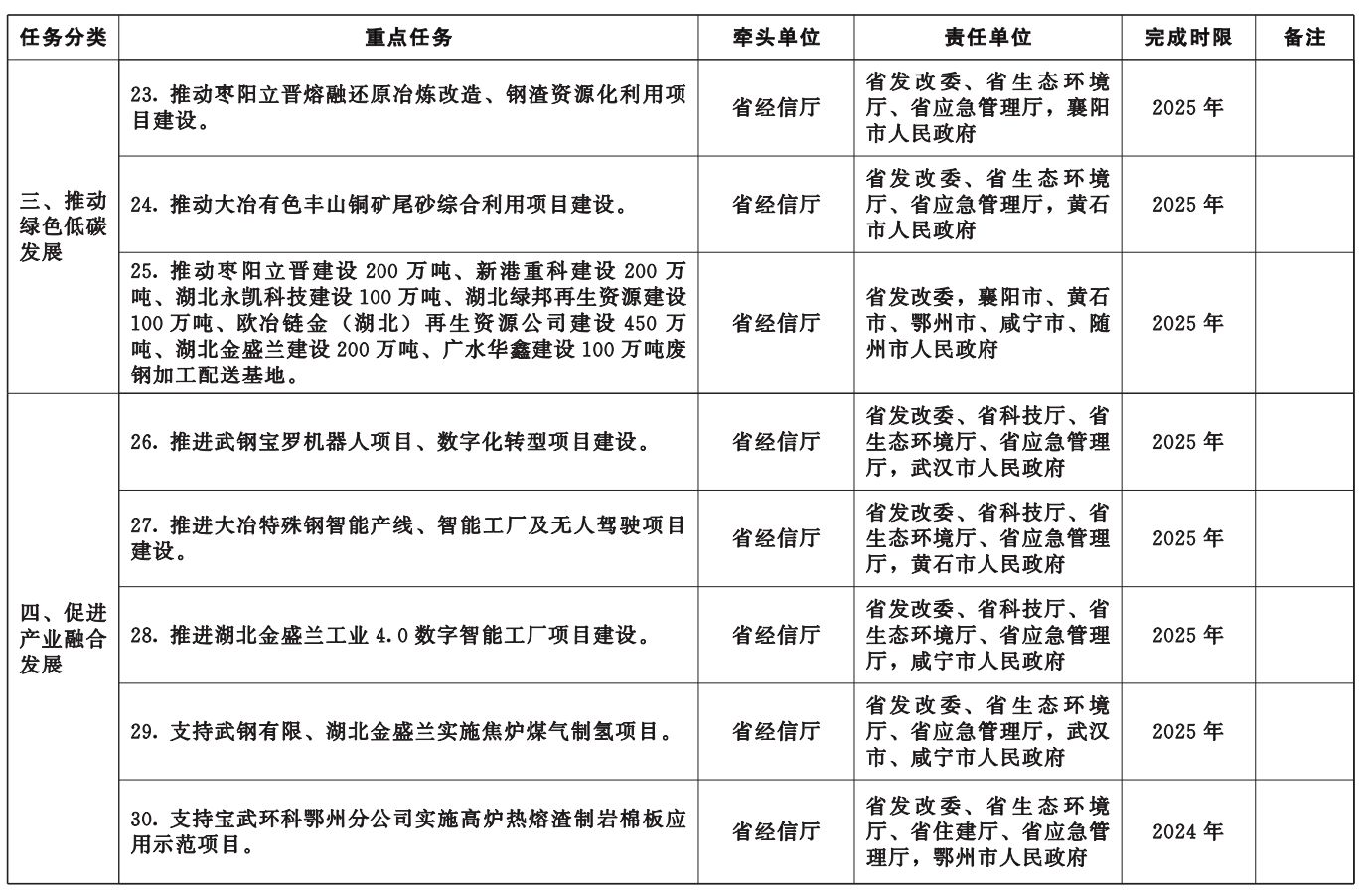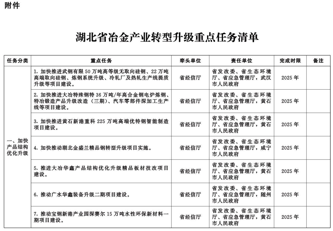 附件:湖北省冶金產(chǎn)業(yè)轉(zhuǎn)型升級(jí)重點(diǎn)任務(wù)清單