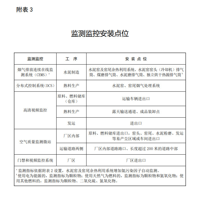 實(shí)施超低排放改造的企業(yè),可通過(guò)全面加強(qiáng)污染物排放自動(dòng)監(jiān)測(cè)、過(guò)程監(jiān)控和視頻監(jiān)控設(shè)施建設(shè)等方式自證穩(wěn)定達(dá)到超低排放要求,包括以下措施。按照附表3的要求安裝自動(dòng)監(jiān)控設(shè)施,水泥窯及窯尾余熱利用系統(tǒng)增加氨污染因子自動(dòng)監(jiān)測(cè)。主要生產(chǎn)裝備和污染治理設(shè)施安裝分布式控制系統(tǒng)(DCS),重點(diǎn)工序安裝高清視頻監(jiān)控設(shè)施、關(guān)鍵點(diǎn)位布設(shè)空氣質(zhì)量監(jiān)測(cè)微站。建設(shè)全廠一體化環(huán)境管控平臺(tái),記錄有組織排放、無(wú)組織排放相關(guān)監(jiān)測(cè)監(jiān)控和治理設(shè)施運(yùn)行情況,以及清潔運(yùn)輸情況。自動(dòng)監(jiān)測(cè)、DCS系統(tǒng)等數(shù)據(jù)至少保存五年以上,高清視頻監(jiān)控?cái)?shù)據(jù)至少保存六個(gè)月以上(具體要求見(jiàn)附表3、4)。