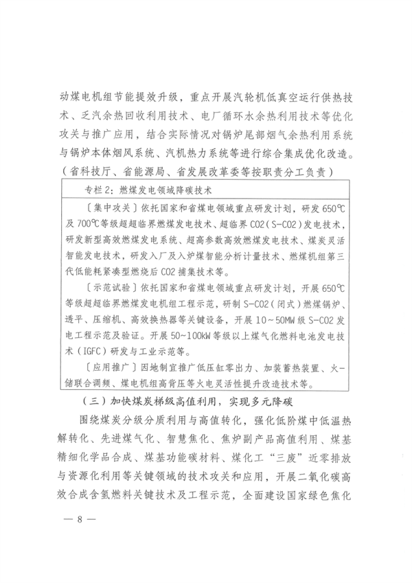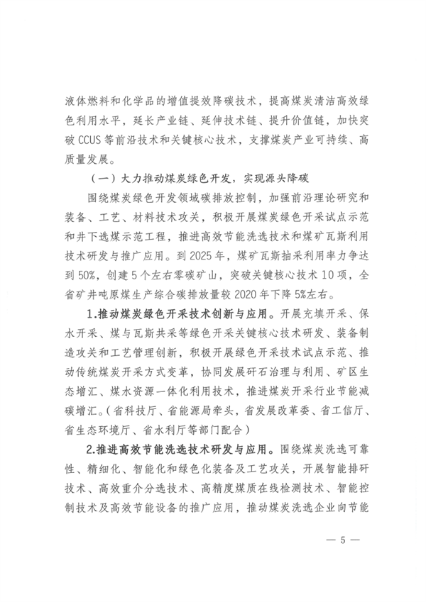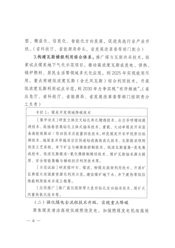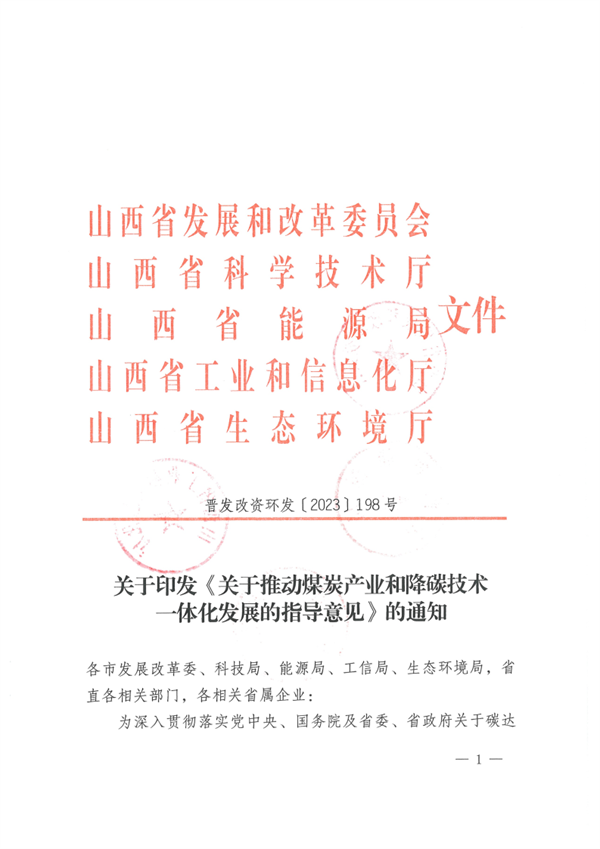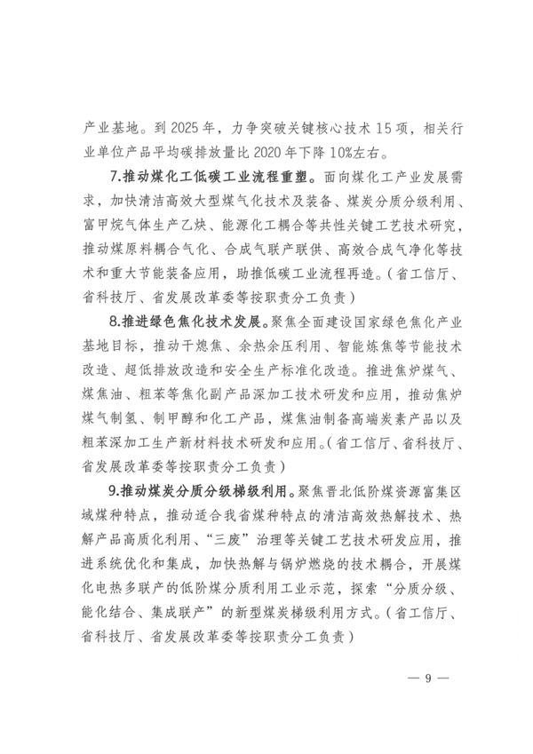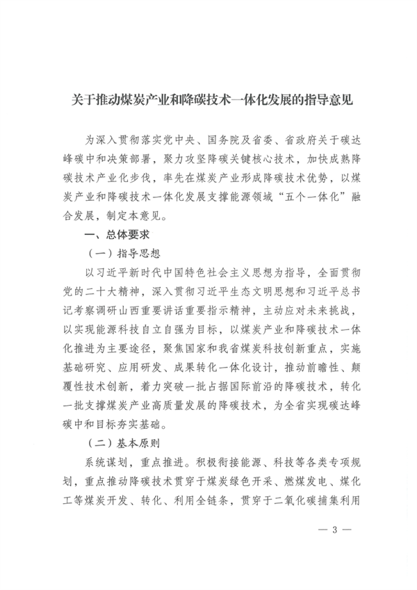 山西:《關(guān)于推動煤炭產(chǎn)業(yè)和降碳技術(shù)一體化發(fā)展的指導(dǎo)意見》