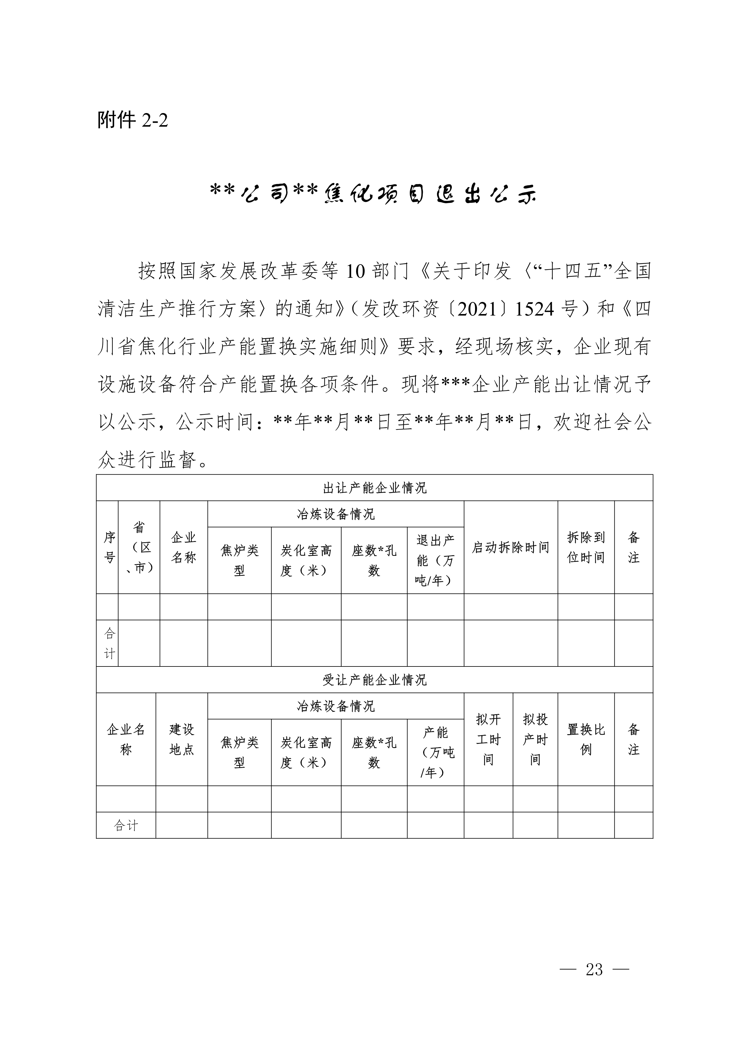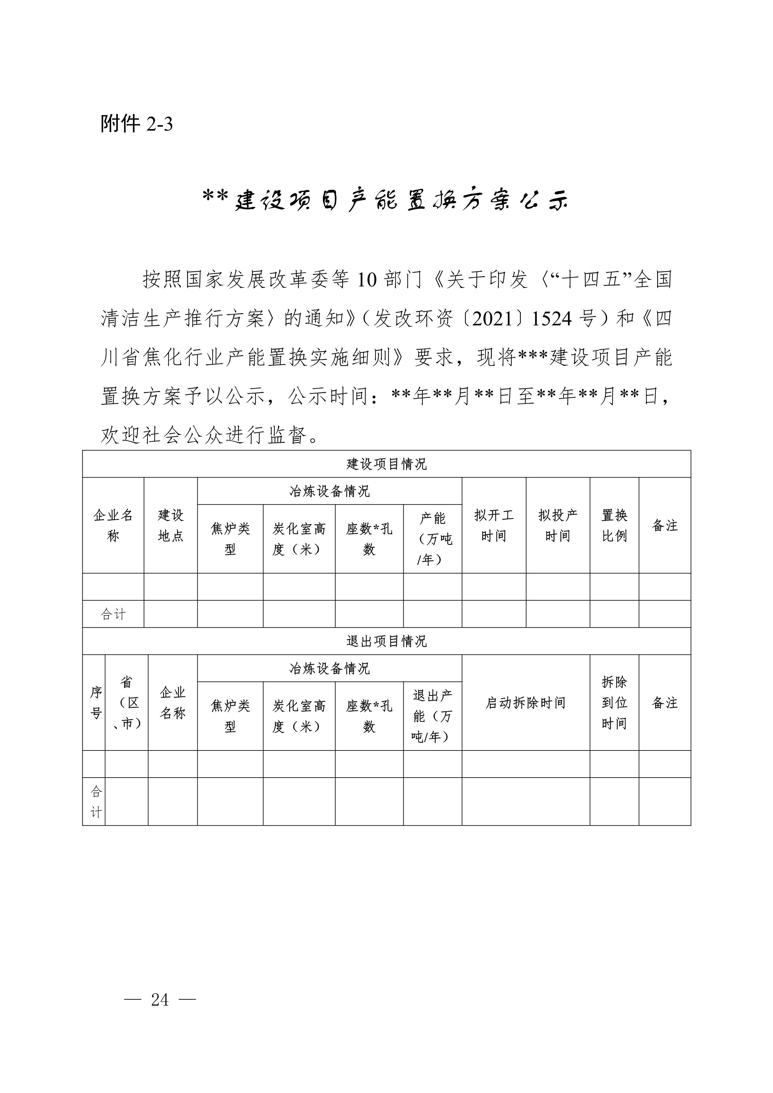 四川省焦化行業(yè)產(chǎn)能置換實施細則(征求意見稿)